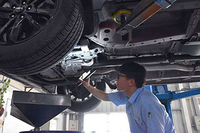 查看底盤托底的情況、前后橋緊固扭矩以及是否有漏油滲油等情況出現。